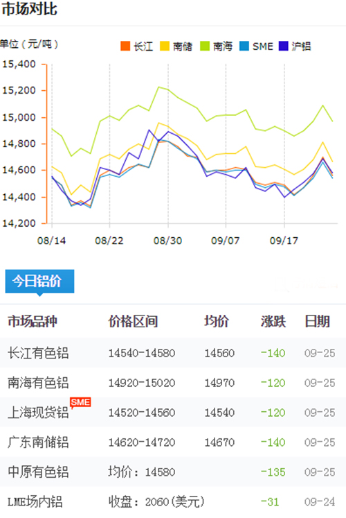 鋁錠價格今日鋁價2018-9-25