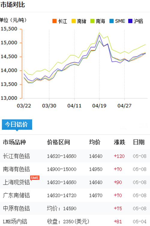 鋁錠價格今日鋁價2018-5-8