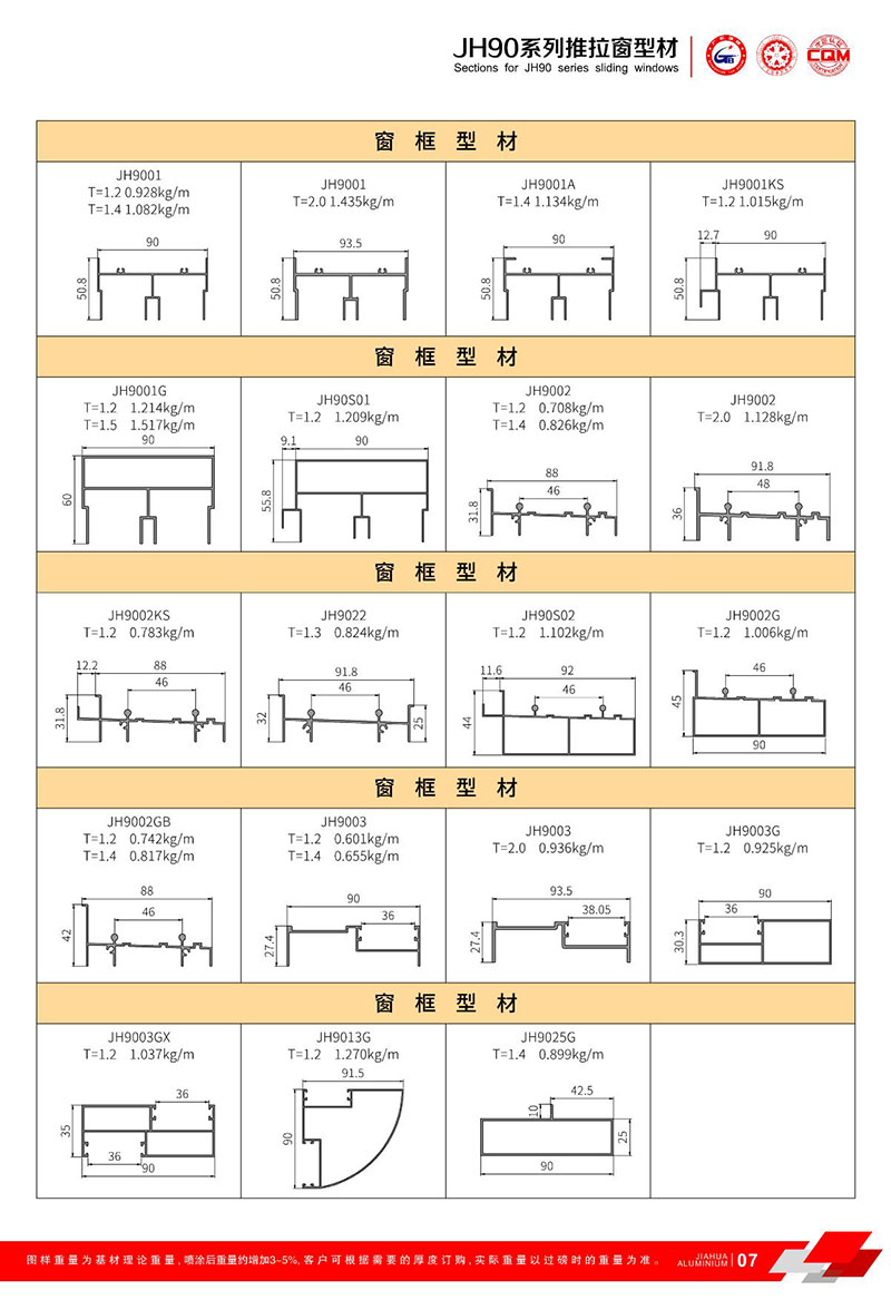 推拉窗系列 平開窗系列 平開門系列 斷橋隔熱系列 幕墻系列 通用型材系列