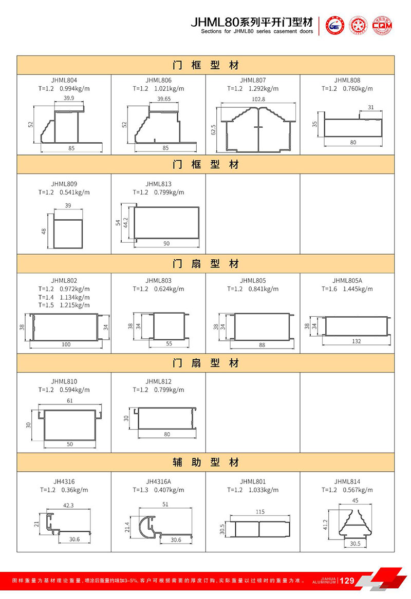 鋁型材規格型號:JHML80