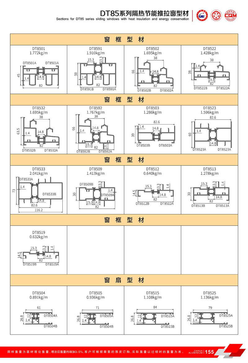 推拉窗系列 平開窗系列 平開門系列 斷橋隔熱系列 幕墻系列 通用型材系列