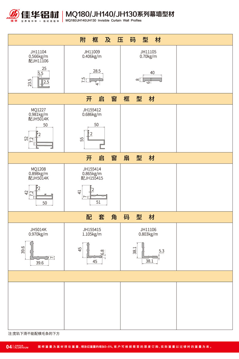 鋁型材規(guī)格型號(hào):MQ180/JH140/JH130 A