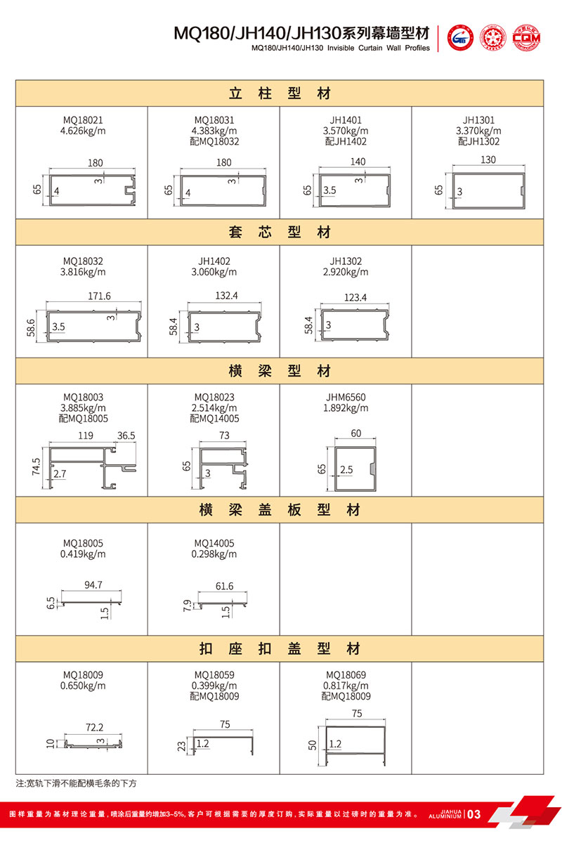 鋁型材規格型號:MQ180/JH140/JH130 B