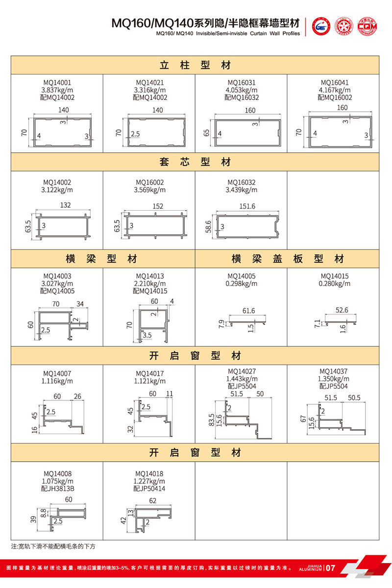 推拉窗系列 平開窗系列 平開門系列 斷橋隔熱系列 幕墻系列 通用型材系列