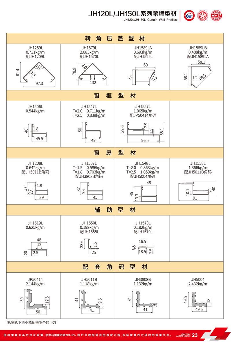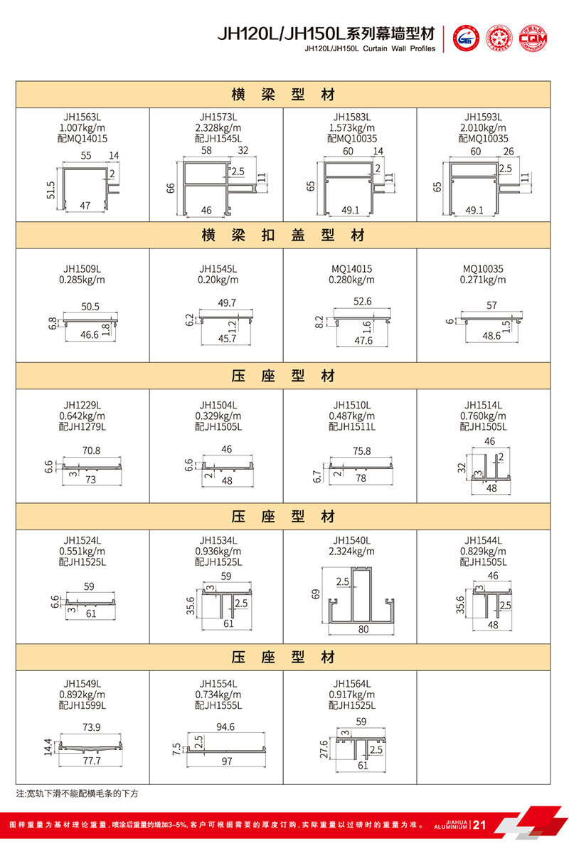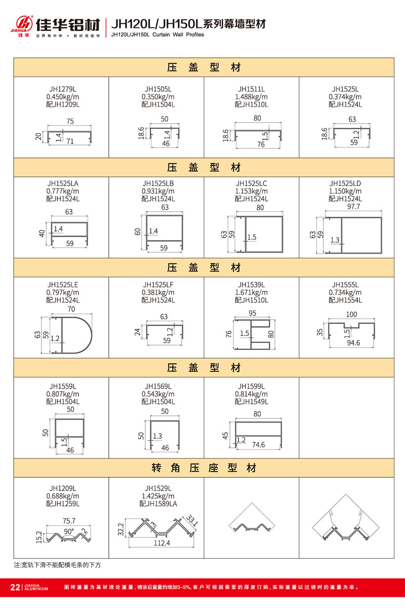 鋁型材規(guī)格型號:JH120L/150L B