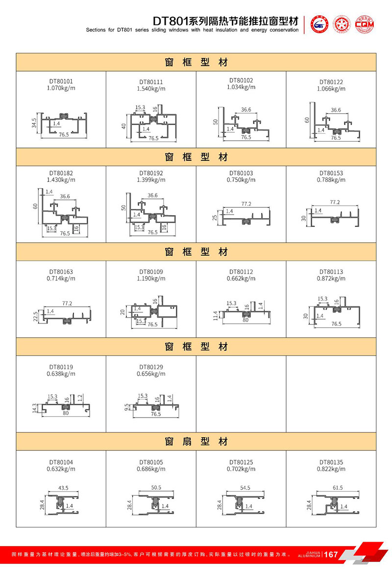 推拉窗系列 平開窗系列 平開門系列 斷橋隔熱系列 幕墻系列 通用型材系列