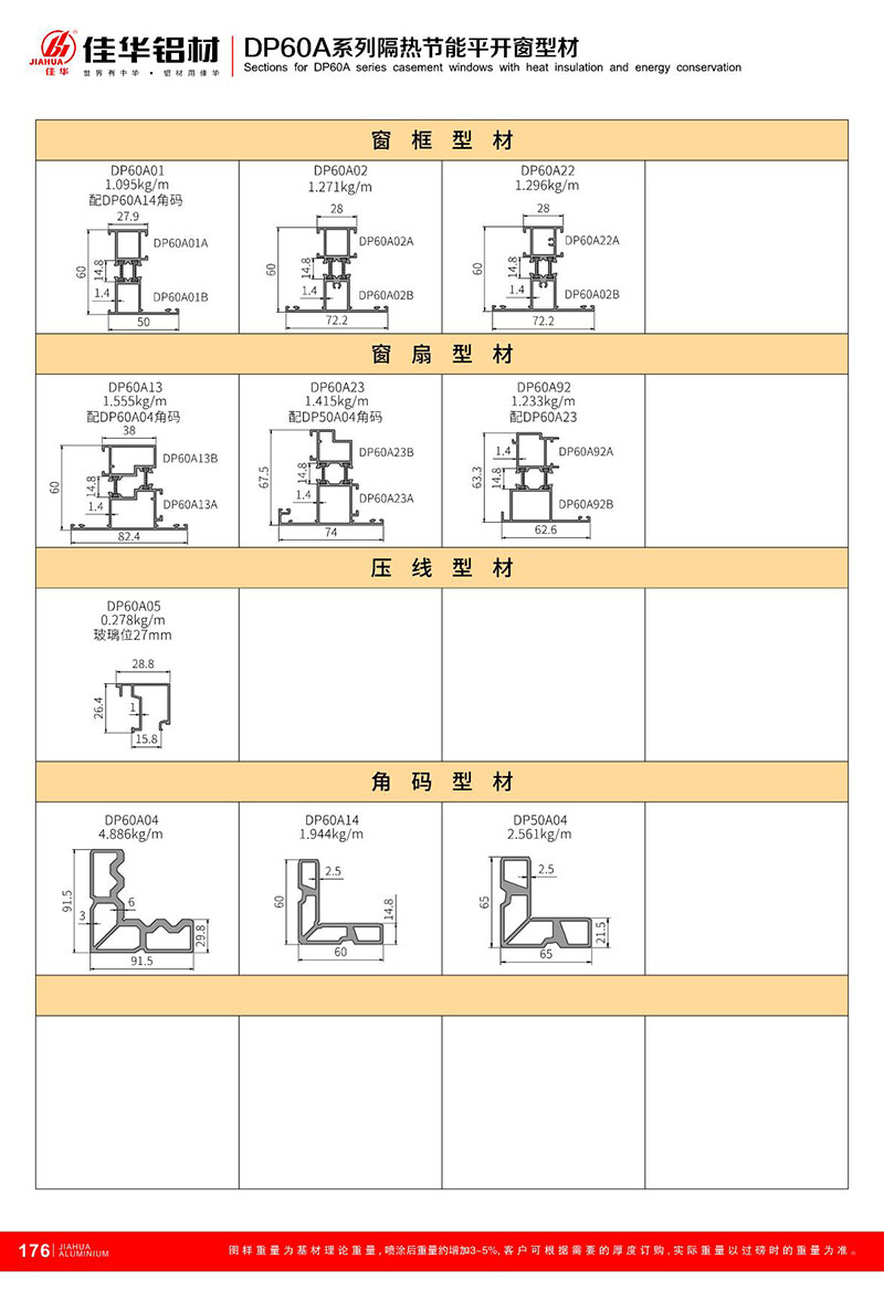 鋁型材規格型號:DP60A平開系列