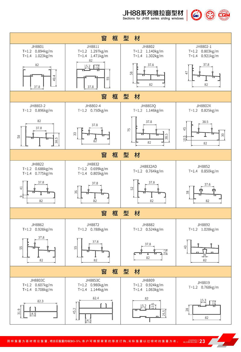 推拉窗系列 平開窗系列 平開門系列 斷橋隔熱系列 幕墻系列 通用型材系列