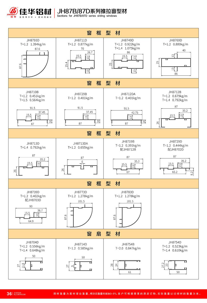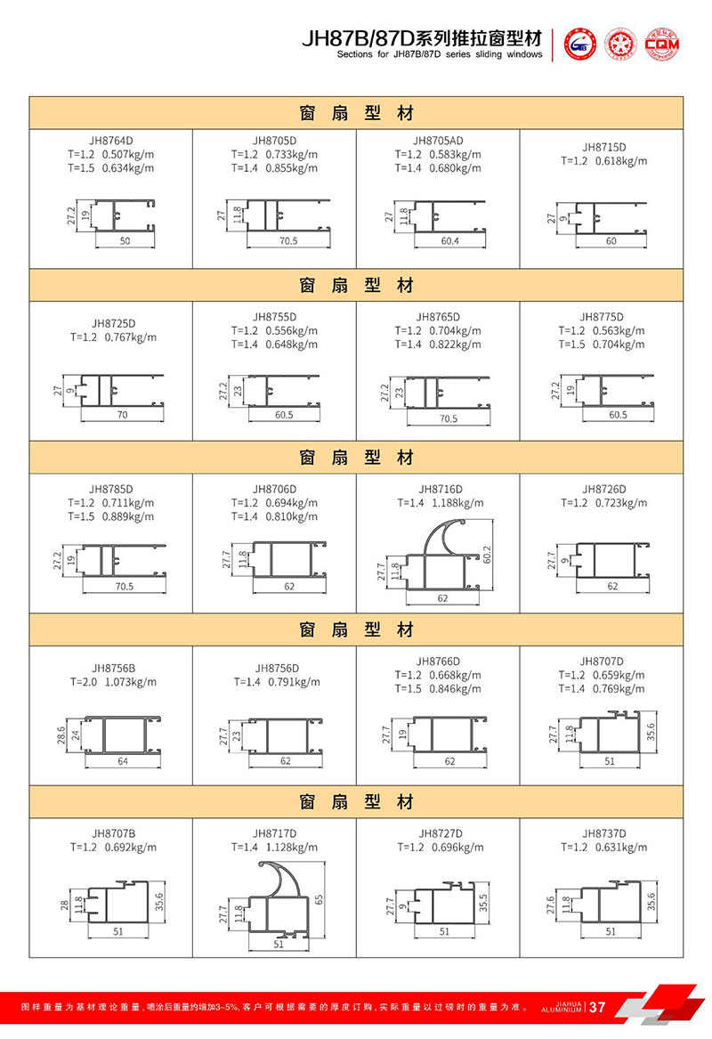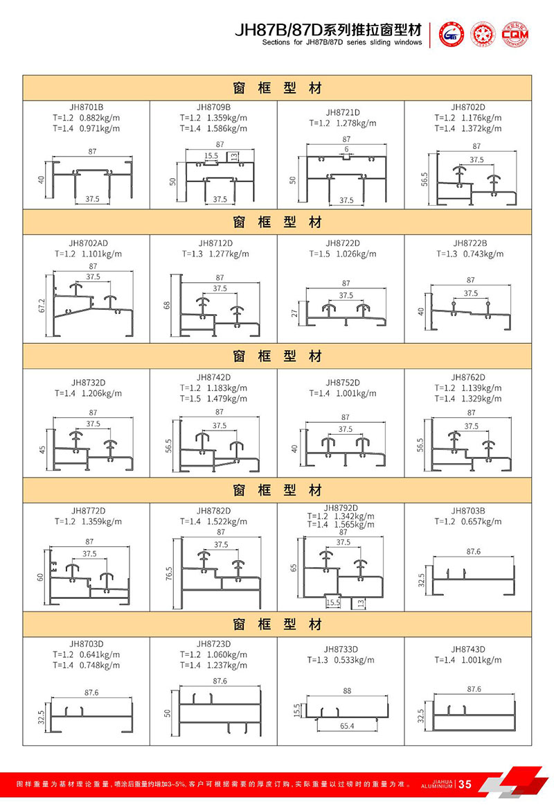 推拉窗系列 平開窗系列 平開門系列 斷橋隔熱系列 幕墻系列 通用型材系列
