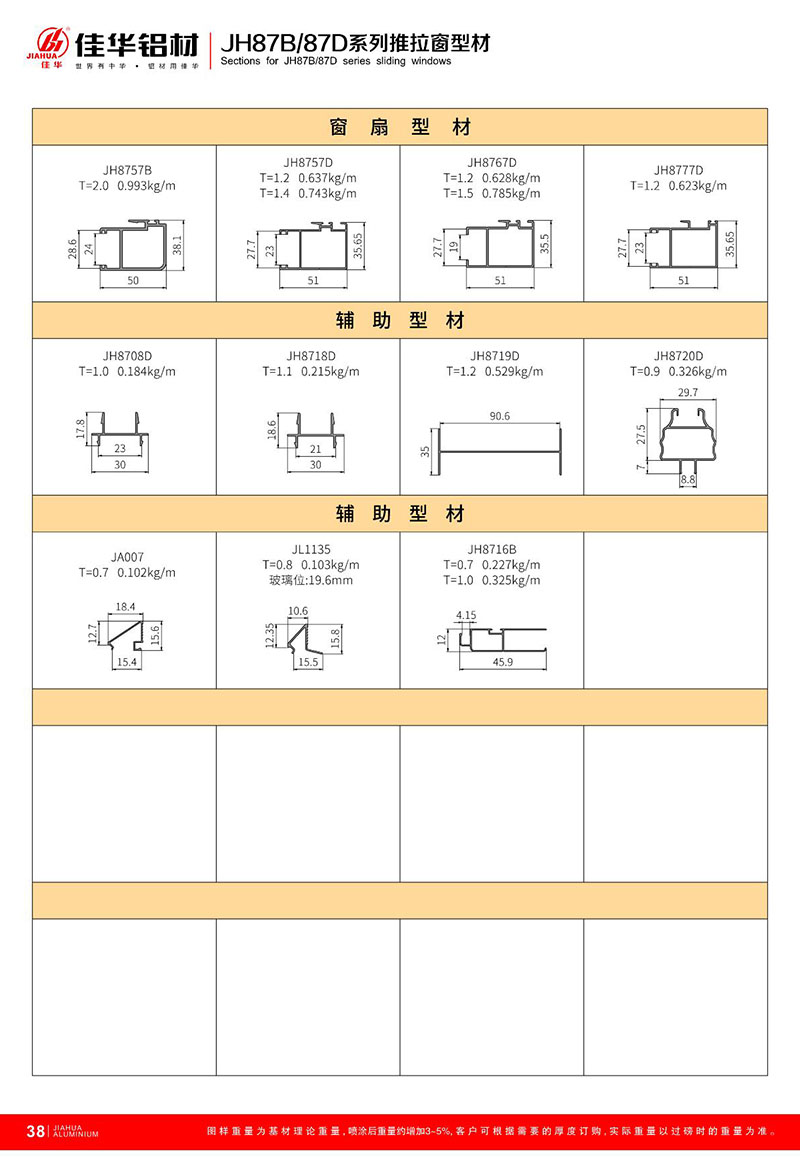 鋁型材規格型號:JH87B/87D 二