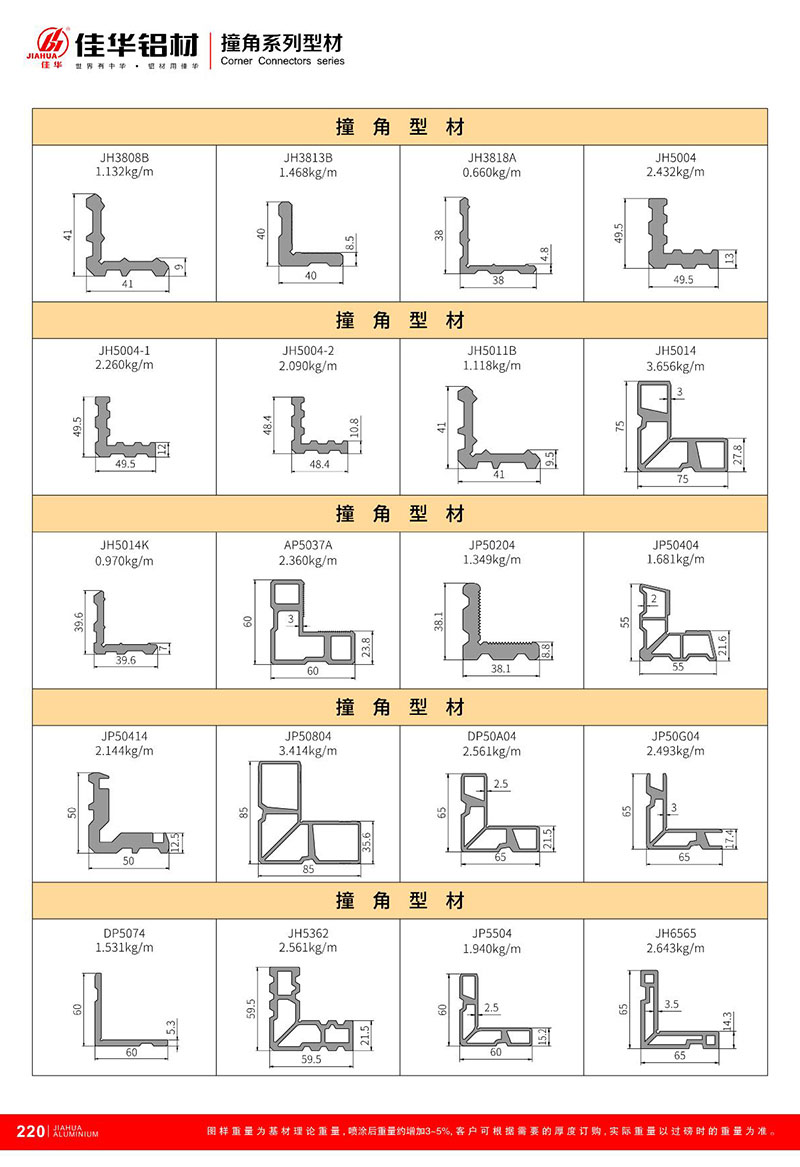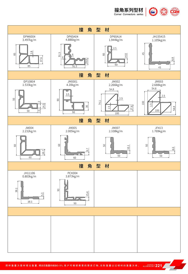 鋁型材規(guī)格型號(hào):撞角型材