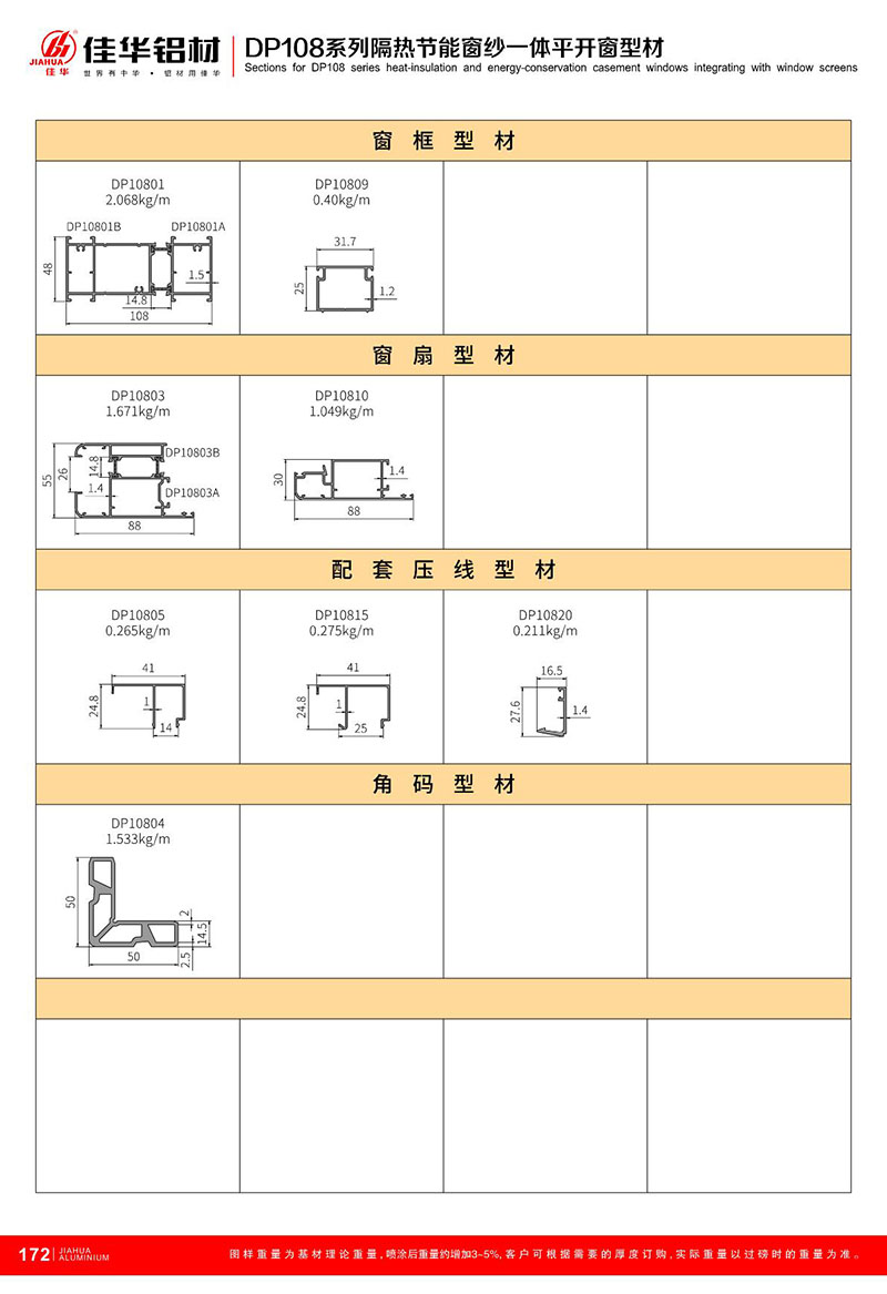 鋁型材規(guī)格型號:DP108一體窗系列