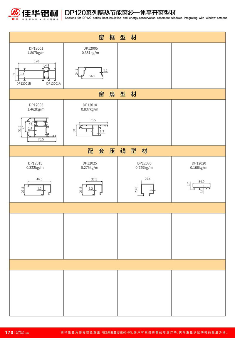 鋁型材規(guī)格型號(hào):DP120一體窗系列