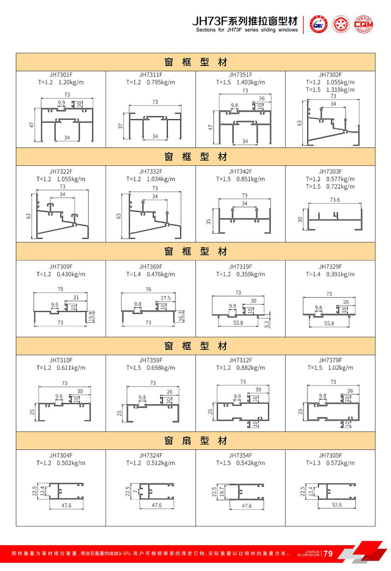 推拉窗系列 平開窗系列 平開門系列 斷橋隔熱系列 幕墻系列 通用型材系列